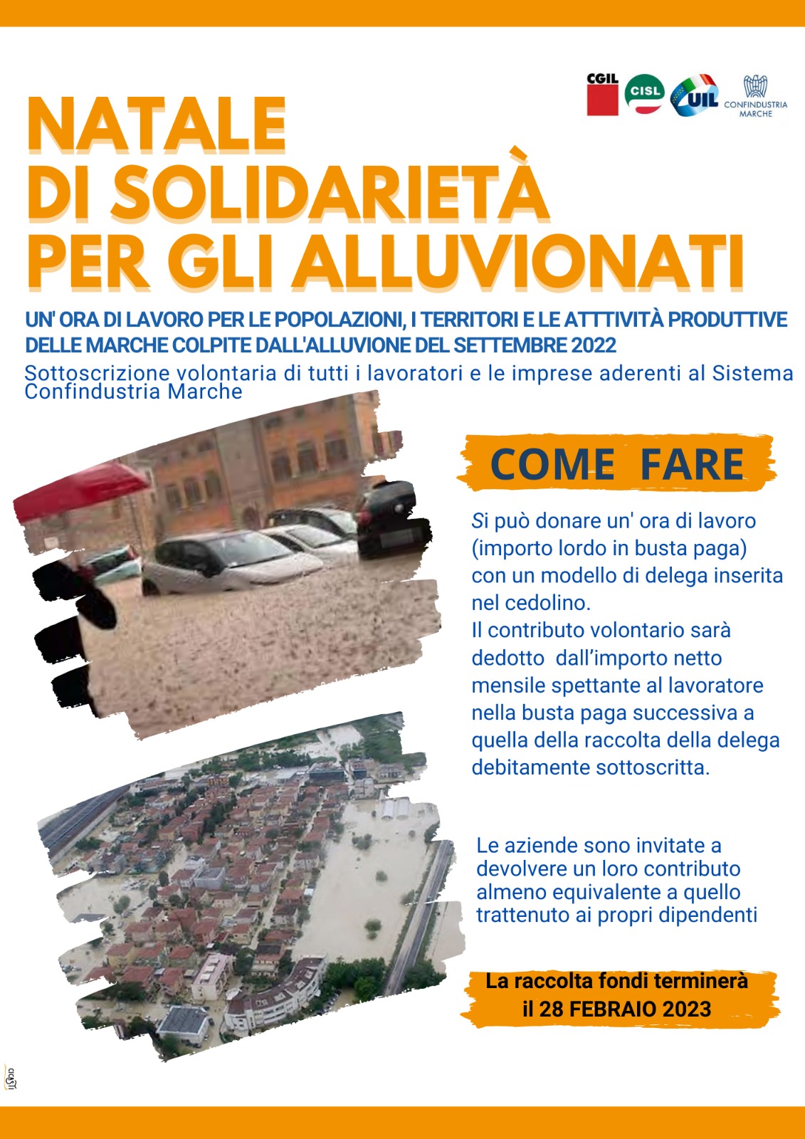 Contribuzione al Fondo di intervento "Confindustria Marche, CGIL CISL UIL Marche, un Natale di solidarietà per gli alluvionati" attivato per le zone alluvionate delle Marche nel settembre 2022”