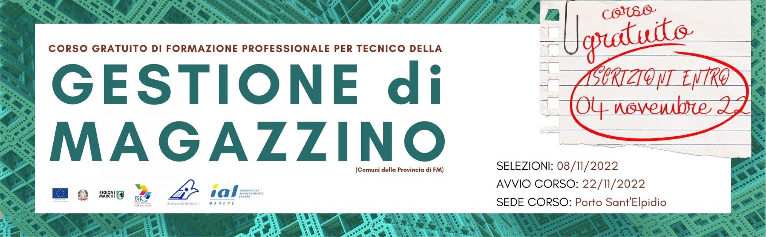 Corso "Tecnico della GESTIONE DI MAGAZZINO" (500 ore di cui 200 di stage)-Scadenza iscrizioni 04/11/2022